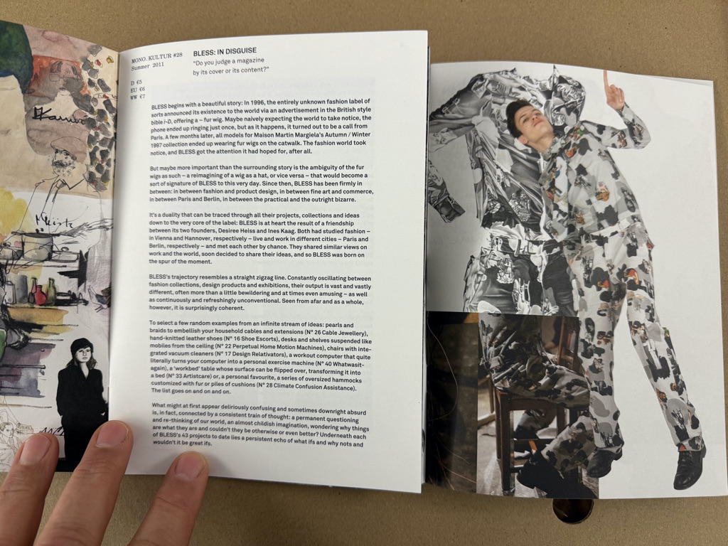 Bless begins with a beautiful story: In 1996, the entirely unknown fashion label of sorts announced its existence to the world via an advertisement in the British style bible i-D, offering a – fur wig. Maybe naively expecting the world to take notice, the phone ended up ringing just once, but as it happens, it turned out to be a call from Paris. A few months later, all models for Maison Martin Margiela’s Autumn / Winter 1997 collection ended up wearing fur wigs on the catwalk. The fashion world took notice, and Bless got the attention it had hoped for, after all. [...] (Englisch)