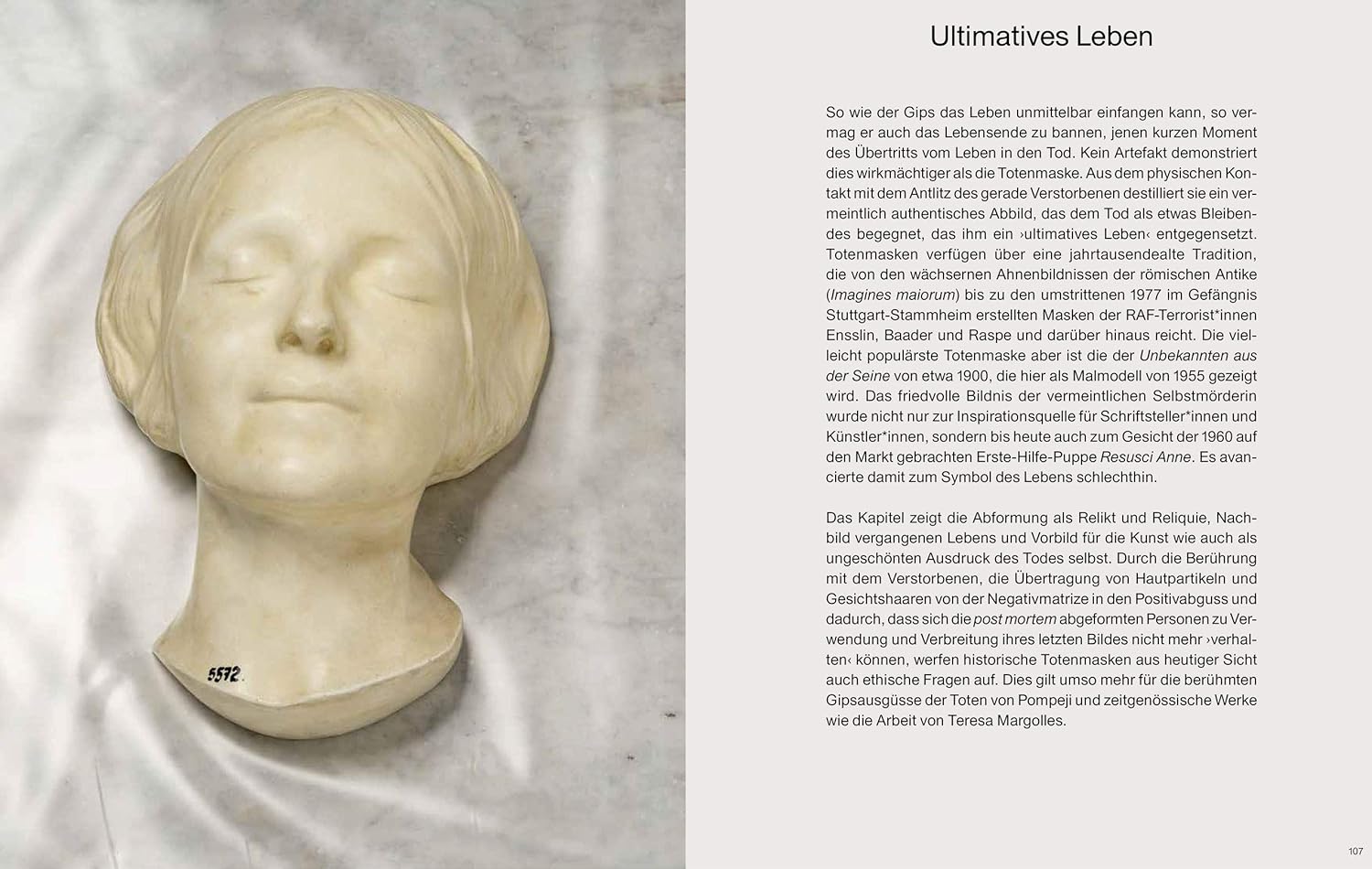 der Staatlichen Museen zu Berlin fertigt seit 1819 Gipsabgüsse wichtiger Bildwerke aus Berliner Museen und anderen Sammlungen. Als weltweit größte, noch heute aktive Manufaktur ihrer Art verfügt die Gipsformerei über ein mehrere Tausend Stücke umfassendes Konvolut von Mastermodellen, Formen und Malmodellen. Die Publikation erschließt diesen Bestand querschnittsartig und stellt ihm herausragende Objekte aus internationalen Sammlungen gegenüber, wobei die zeitgenössische Kunst eine zentrale Rolle spielt. Dazu widmet sie sich dem Thema der Lebend- bzw. Naturabformung, einer seit der Antike überlieferten Praxis der bildnerischen Annäherung an das Leben. Das Buch geht der These nach, dass die Abformung dasjenige Verfahren ist, das dem Leben (und dem Tod) buchstäblich am nächsten zu kommen vermag. Die Bedeutung der Abformung in der Geschichte der Bildhauerei wird hier anhand von 200 Objekten deutlich, die nicht nur Skulpturen, sondern auch Gemälde, Bücher, Druckgrafiken, Fotografien und Filme umfassen.