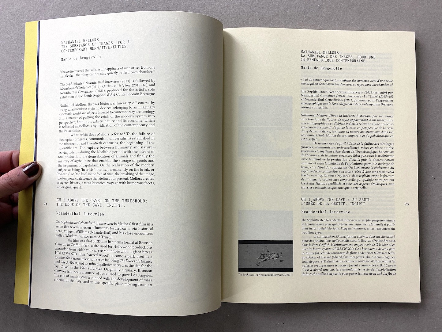 This book, which brings together for the first time the entire series of films around the figure of Neanderthal Man produced by Nathaniel Mellors since 2012, is also the only monograph currently in circulation on the work of this British artist, since the catalogue The Aalto Natives – A Transcendental Manual published in