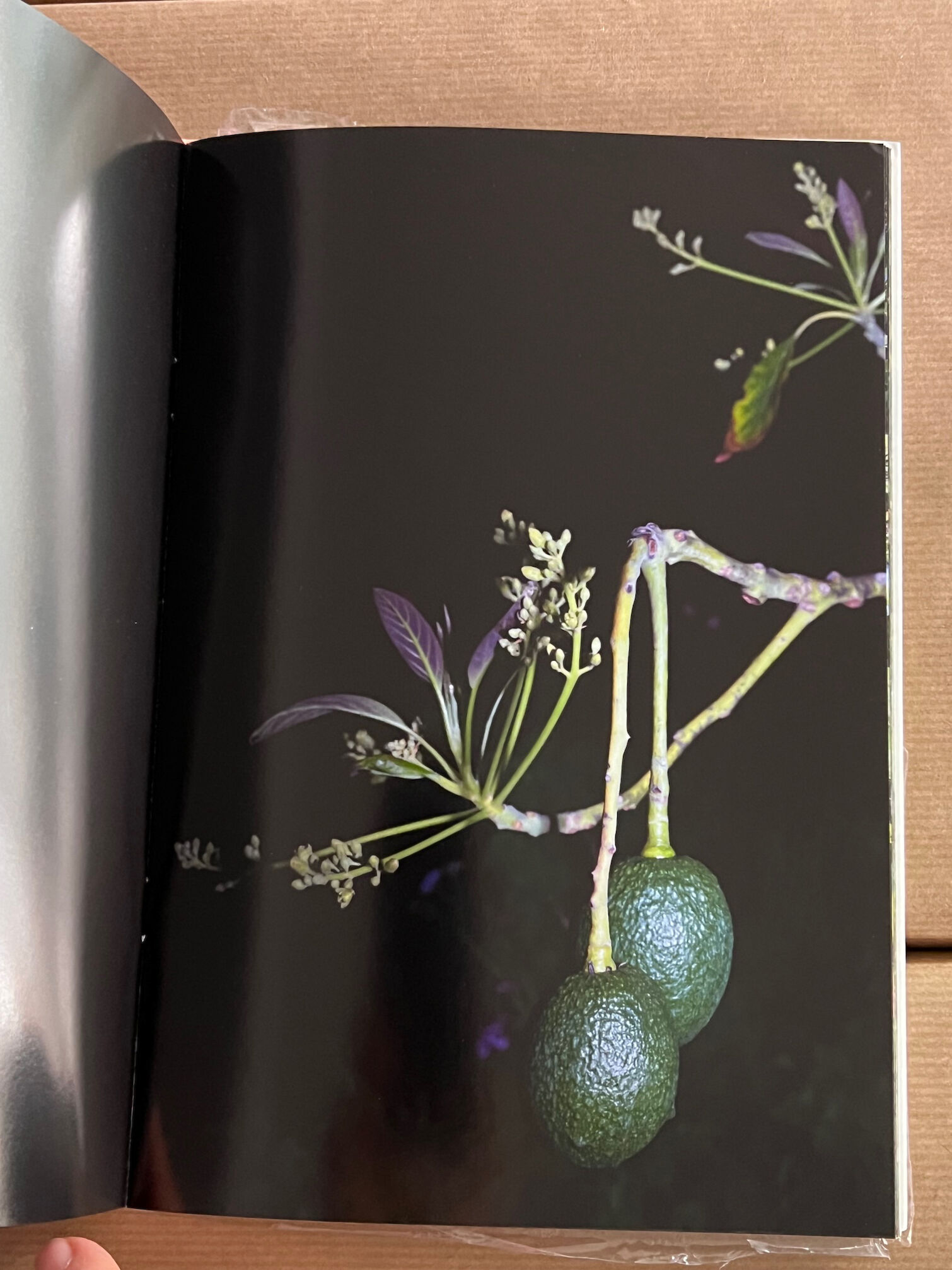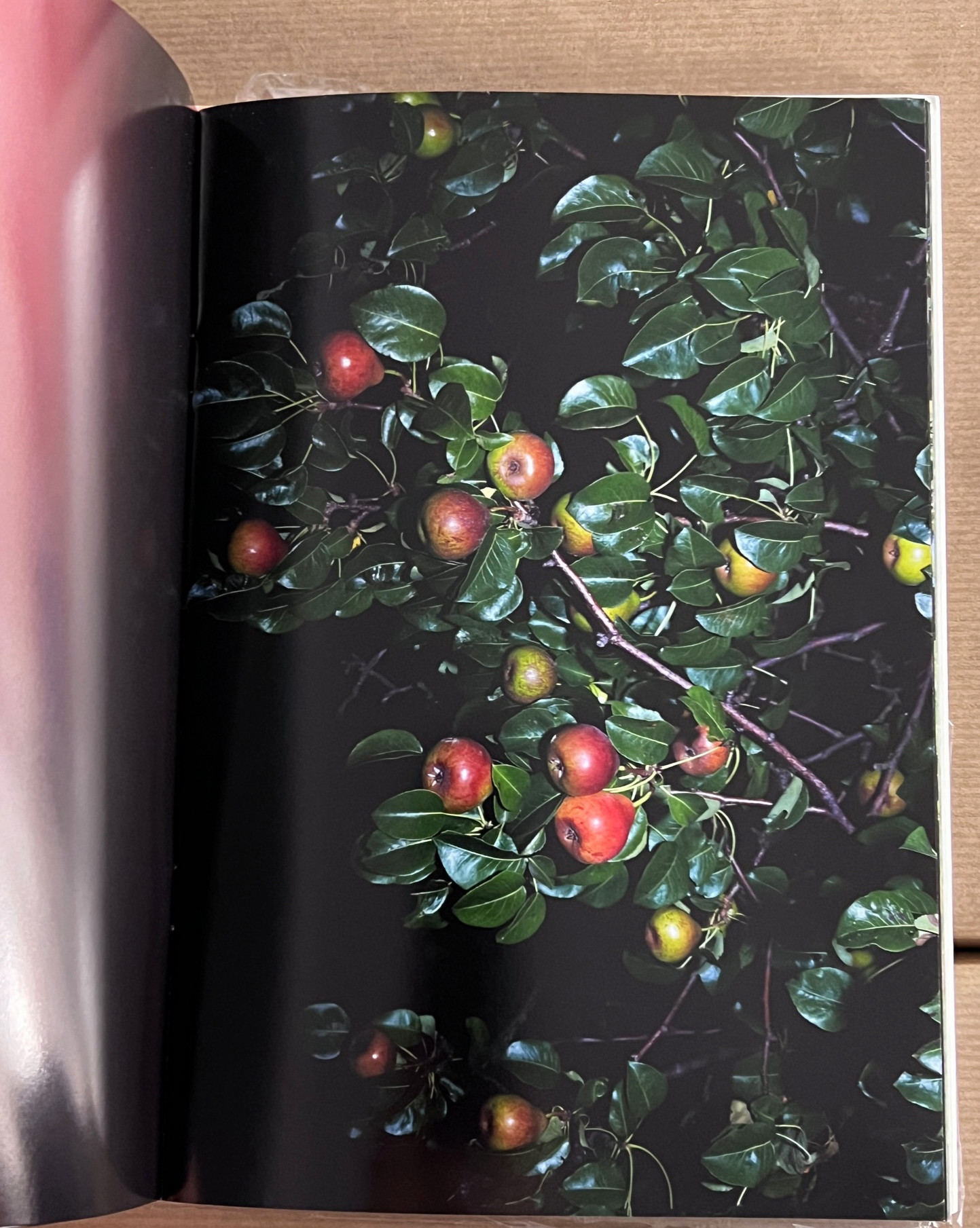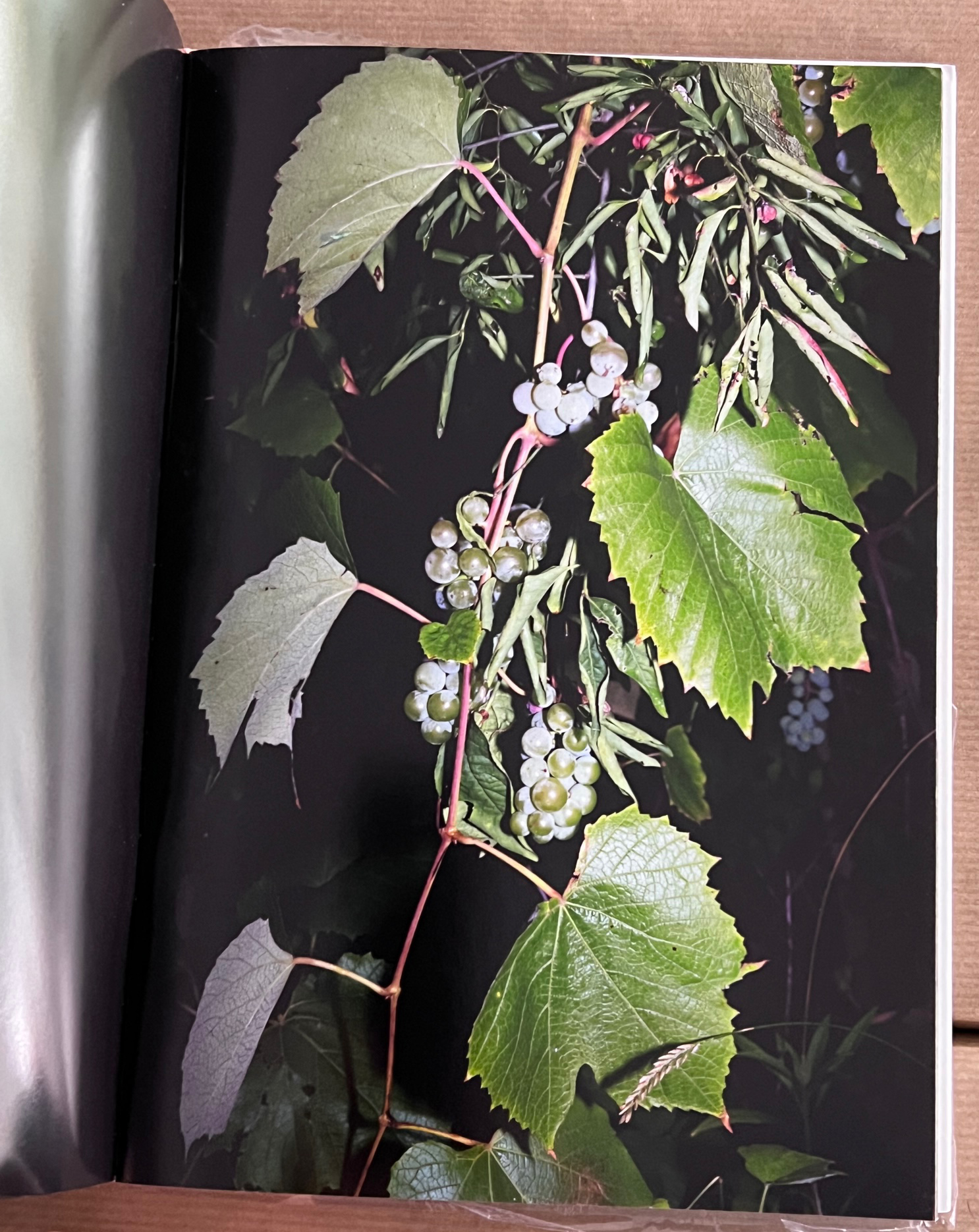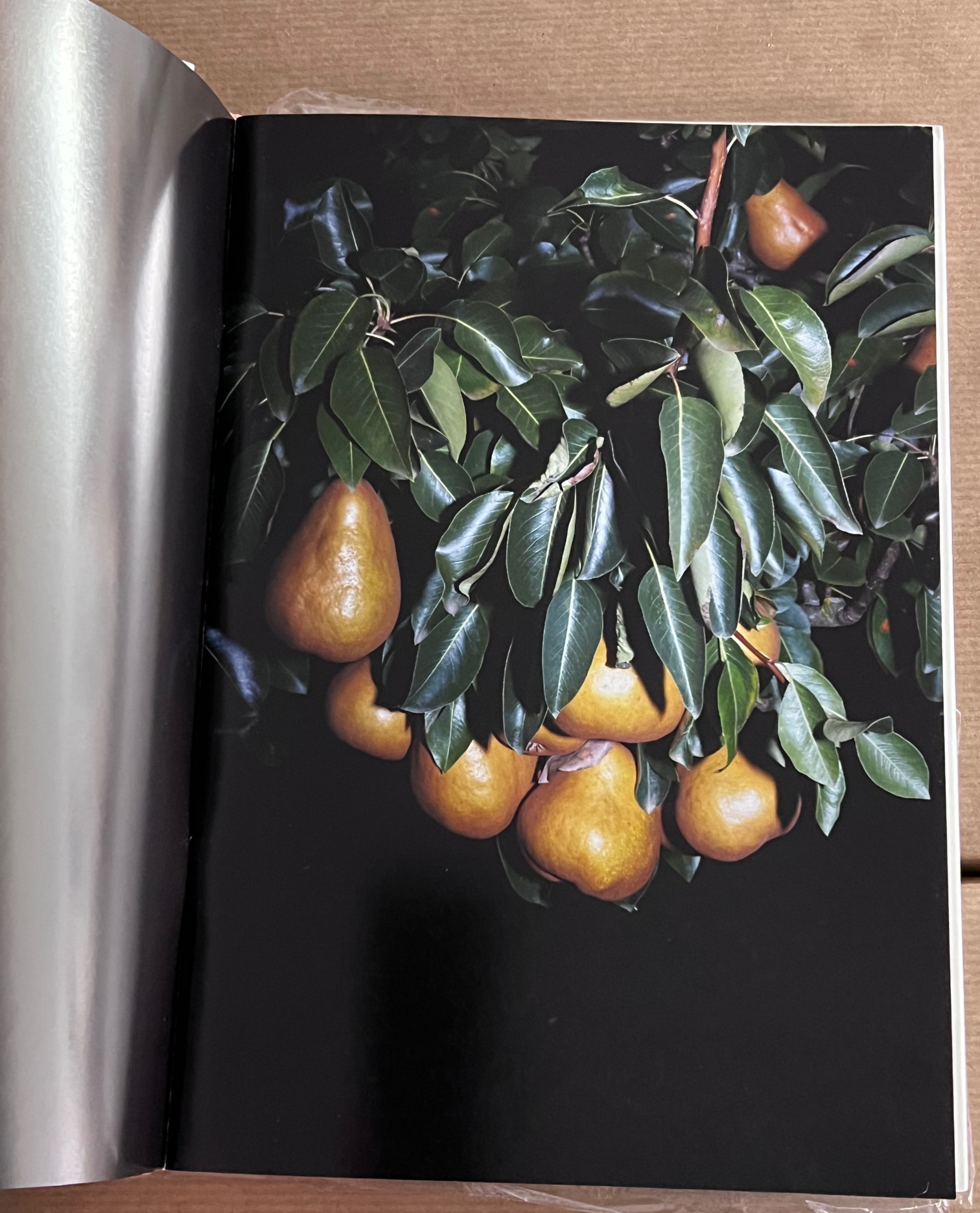 In der Nacht fotografierte der Künstler im Vorbeilaufen – ohne durch den Sucher der Kamera zu schauen – die anmutigen Früchte. Durch das Blitzlicht werden sie aus der Dunkelheit gerissen. Die blauen Pflaumen, gelben Trauben und samtigen Pfirsiche geben so ihre wahre Schönheit preis. Gaißer kontrastiert die Bilder jeweils durch Seiten, die einen Farbverlauf zeigen, der der Farbigkeit der jeweiligen Frucht entspricht. Konkrete Natursituation und Reflexion der Fotografie treffen aufeinander.