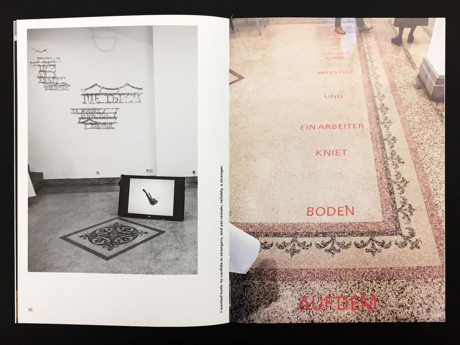 This artists’ publication was published on the occasion of the exhibition Polyphonia, which ran at the Goethe Institut in Sofia, Bulgaria, from October 6 through November 6, 2017. This small publication isn’t a catalogue of the exhibition, although it does include some pictures of it; it is, rather, a second platform for the Polyphonia concept, for which the artists have