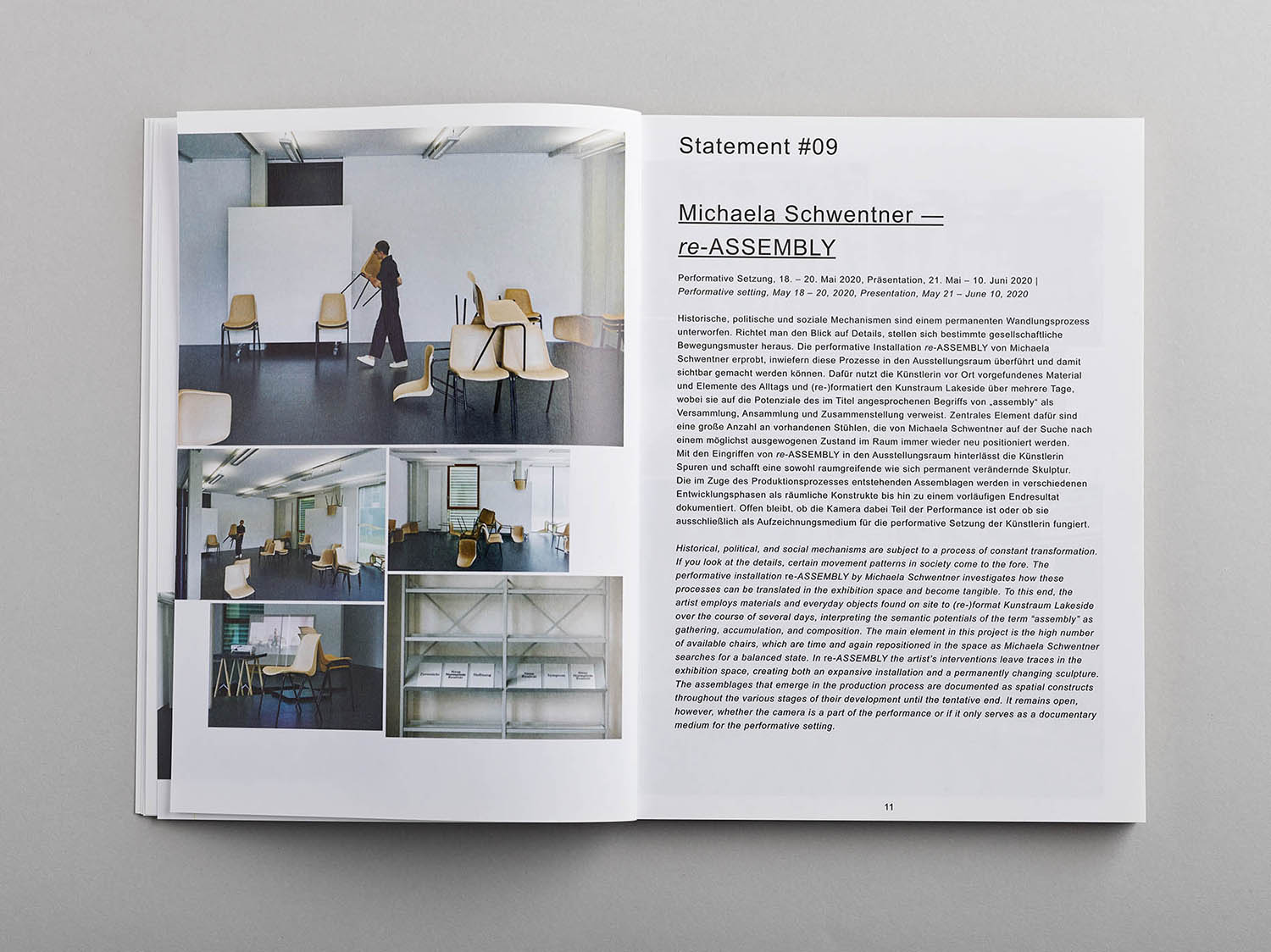 the art space works on a transdisciplinary approach to questions of time and the generation of a respectively multidisciplinary public. The aim of the art space is to convey and confront divergent (artistic) perspectives on shared social relations. The book “Kunstraum Lakeside—Process” dedicates itself to the topic of artistic research that emerges from the institutional peculiarities of this exhibition, performance and discourse space.
