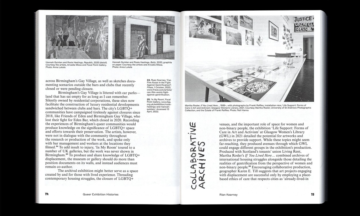 Queer Exhibition Histories comprises case studies highlighting the countless efforts, both large and small, of LGBTQIA+ artists and curators, centring on queer art exhibitions and their modes of documentation and archiving. Often, the legacy of these projects largely depends on personal archives, memories, and
