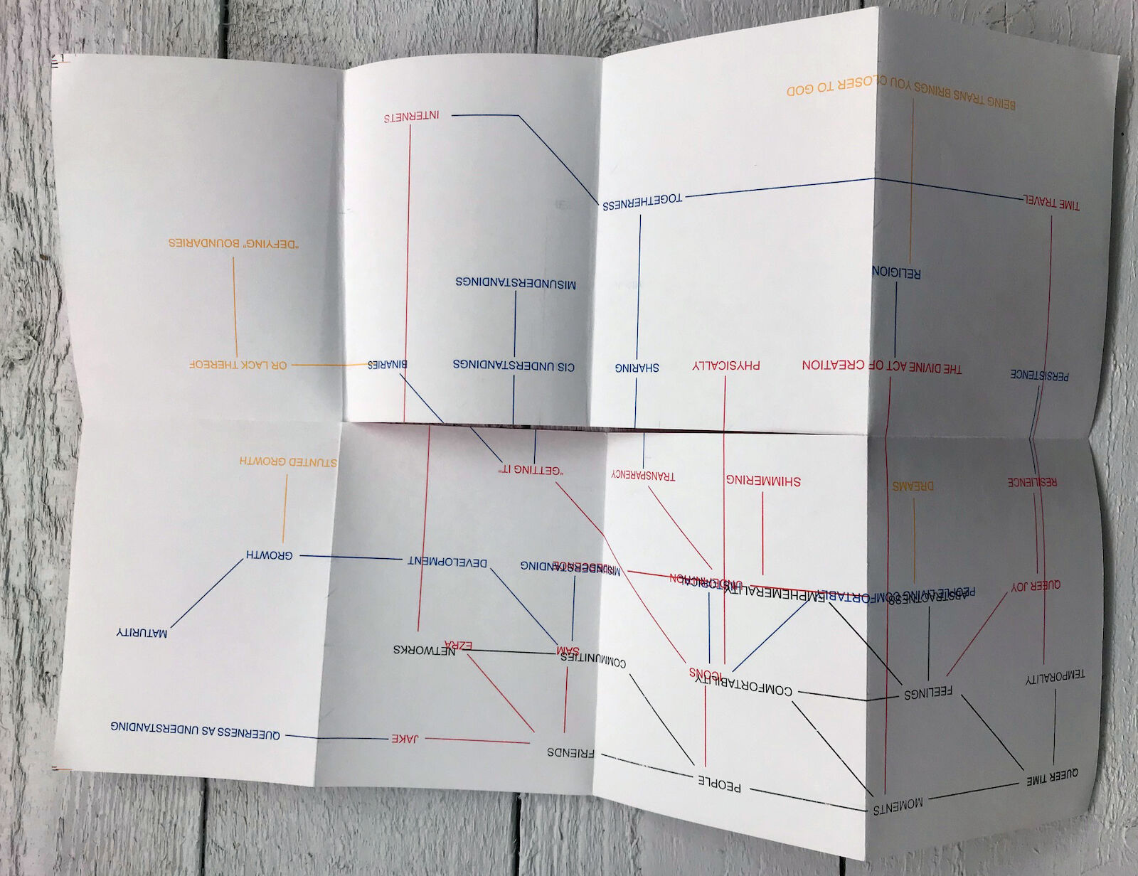 QUEER TIME — ASYMPTOPES OF ARTICULATION is about moving through queer time and language, modular and folding, communities, communal, traces, memories, collapsing and building.