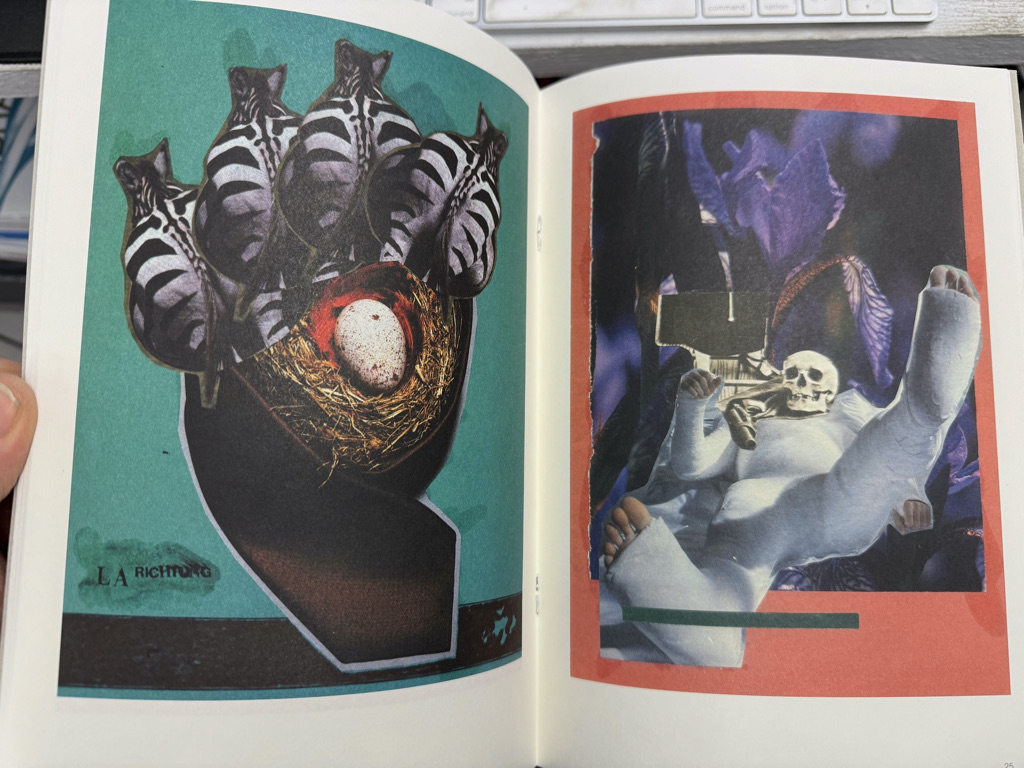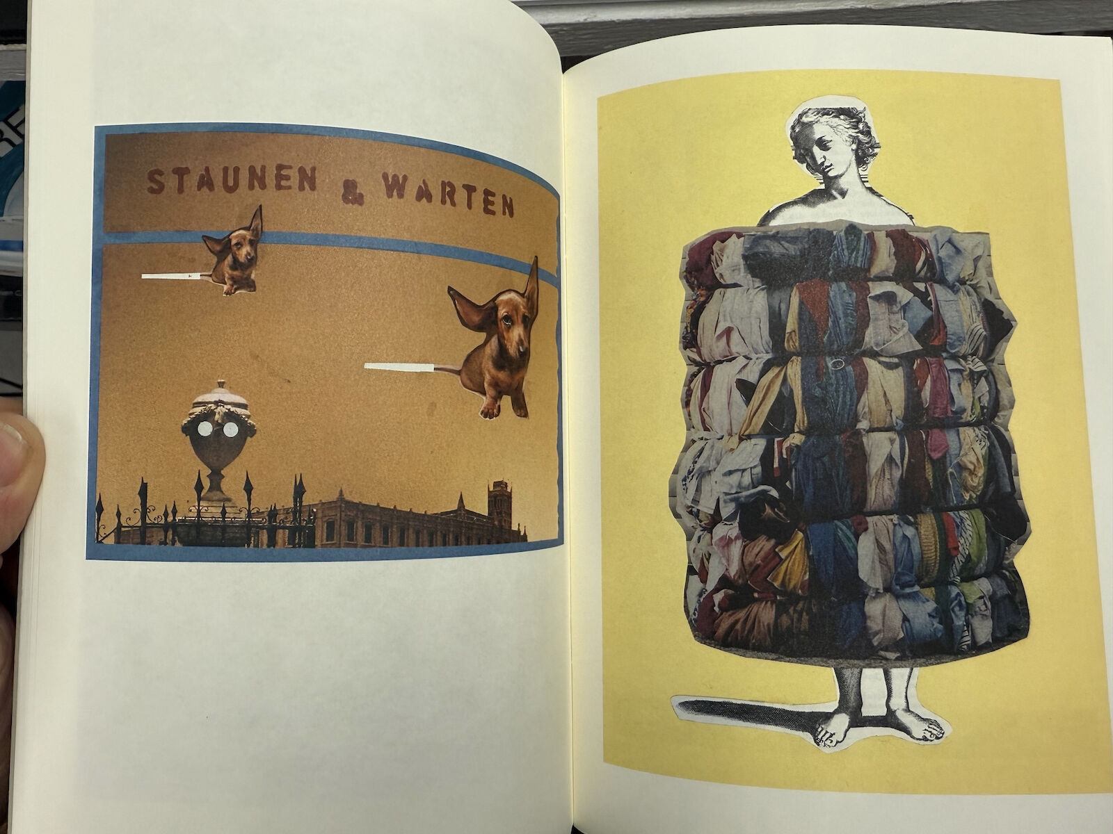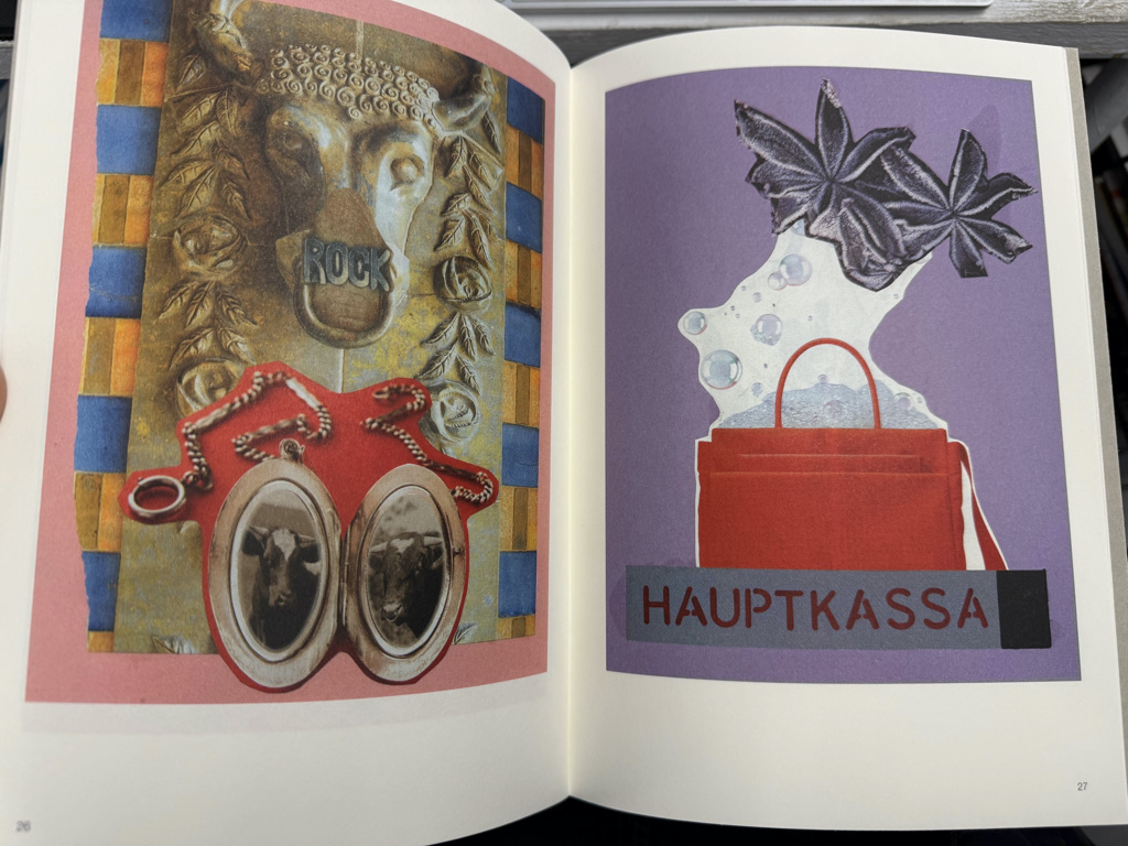 28 ganzseitige, farbige Collagen mit einleitendem Text "Zum sicheren Geleit" von Werner Büttner. Werner Büttner (* 1954 in Jena) ist ein deutscher Maler. In Berlin beginnt Büttner 1974 ein Jurastudium und gründet noch währenddessen mit Albert Oehlen die "Liga zur Bekämpfung des widersprüchlichen Verhaltens". Seine großen, heftig und schnell gemalten Bilder mit pastosem Farbauftrag stehen im Gegensatz zur bunten Farbigkeit der Jungen Wilden, mit denen sie bald zusammmengesehen und ausgestellt werden. Ab den 1990er Jahren widmet sich der Künstler verstärkt der Zeichnung und Druckgrafik und arbeitet an großformatigen Collagen. Seit 1989 hat Werner Büttner eine Professur an der Hochschule für Bildende Künste Hamburg inne.