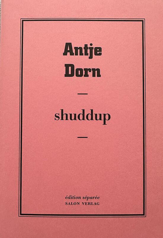 shuddup von Antje Dorn versammelt eine Reihe grafischer und textlicher Arbeiten, in denen die Künstlerin alltägliche Sprache, Zeichen und