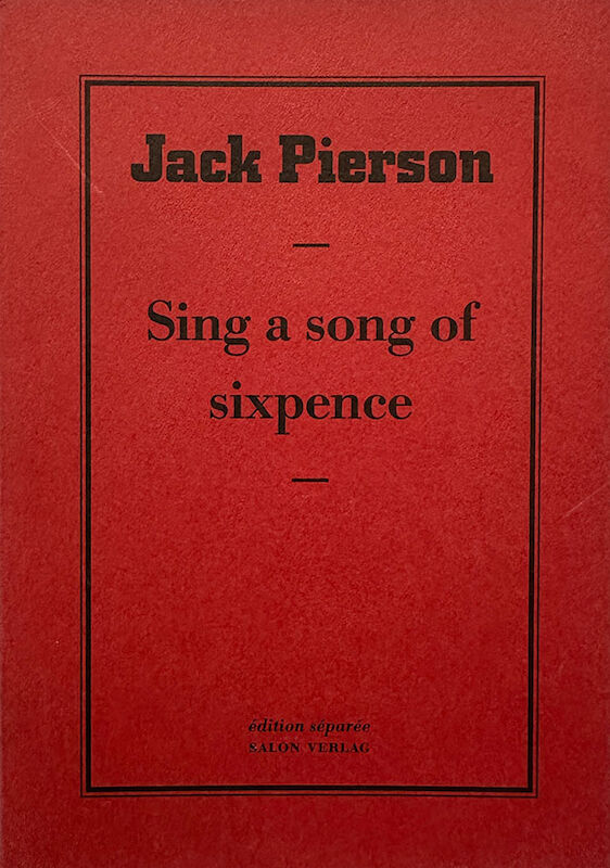 Sing a Song of Sixpence by Jack Pierson brings together fragments of images, text lines, and typographic elements. The publication reads like a loose, poetic arrangement of found materials that reflects Pierson’s interest in memory, pop culture, and a personal visual language. It presents his characteristic blend of melancholy, everyday observation, and visual reduction.
