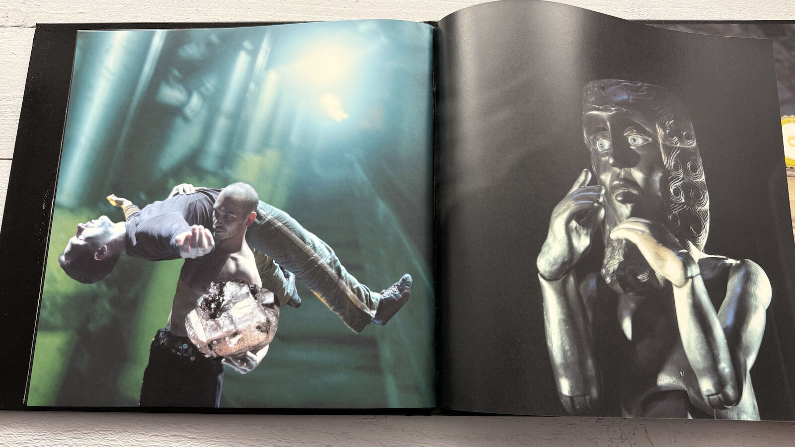 The play premiered in Bytom, Poland, in June 2005, and in Berlin in May 2005; it narrates the story of Skarbek, a mythic figure which appears in Polish miners’ tales. Living in abandoned cole mines, Skarbek is an intriguing gnome who both protects and threatens the miners. The backdrop of the piece is a hallucinatory underworld where shifting perspectives create an unstable environment. Dancers constantly change appearance, morphing into gnomes or unflexible figures, until the whole stage shrinks into a marionette theater.