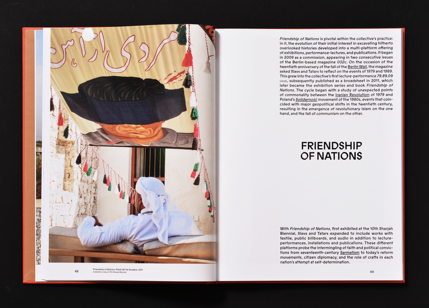 The volume presents a mid-career survey of the work of the artists' collective Slavs and Tatars (founded 2006). The group explores issues of identity, language and belief in the region "east of the former Berlin Wall and west of the Great Wall of China."