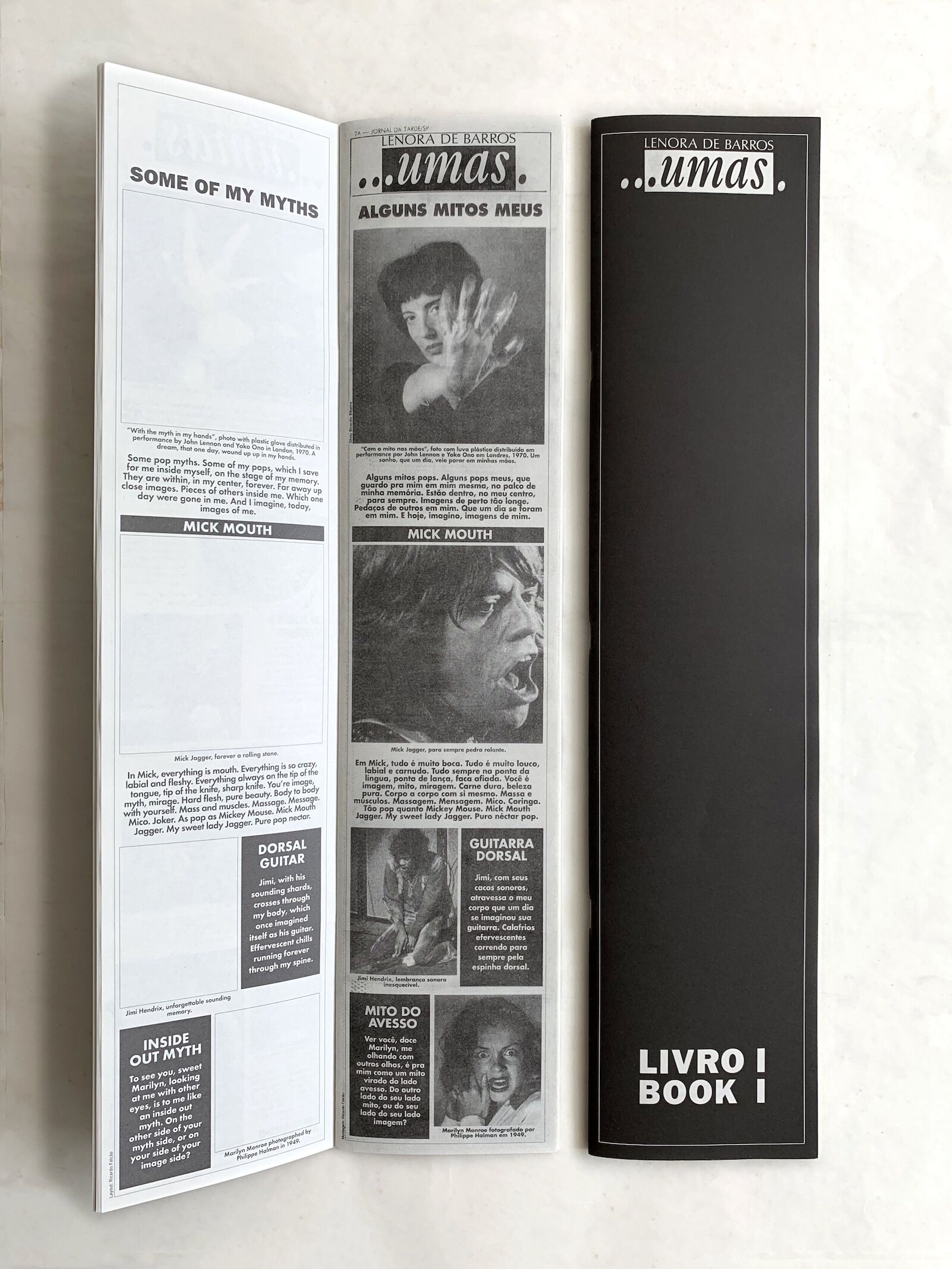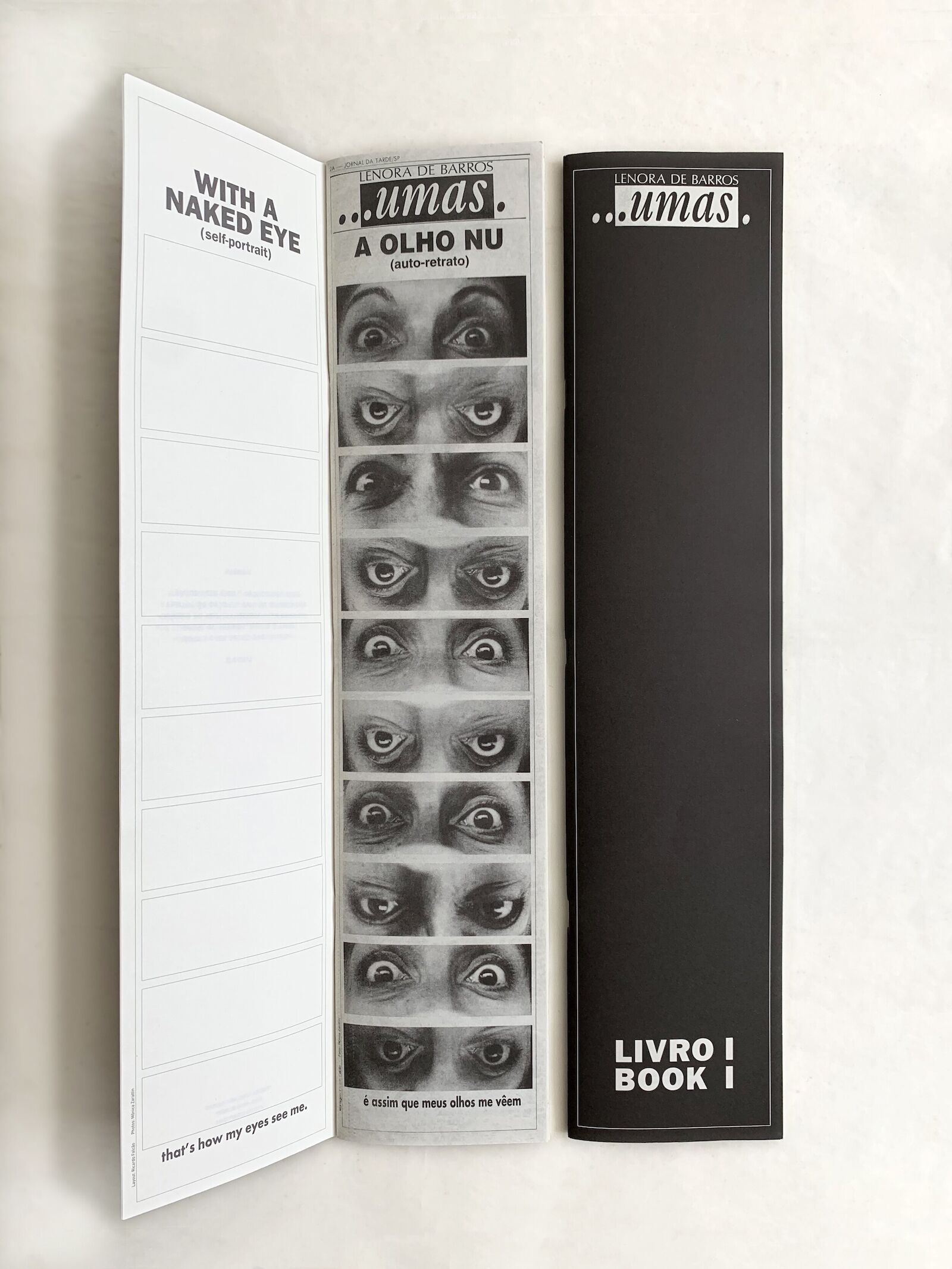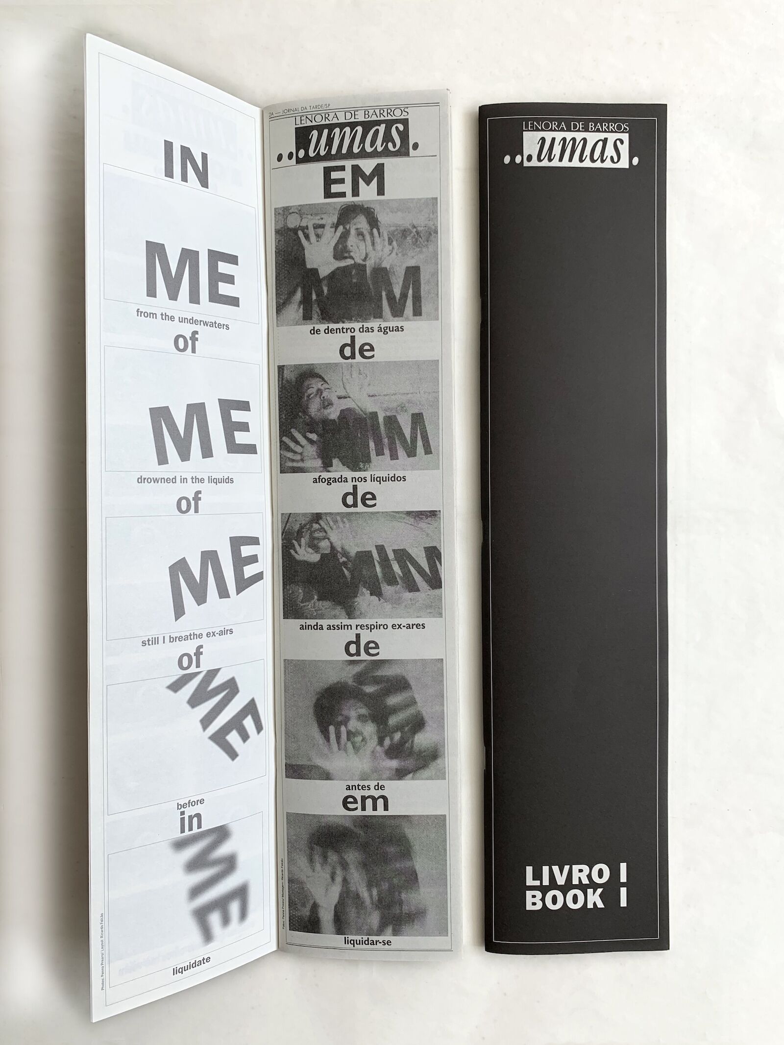 The book ...Umas […Some] begins before I existed. First of all, because of the artist's own connection with the newspaper: Lenora de Barros worked for many years behind the production of magazines and newspapers, artistically thinking the process of some of the main publications that still circulate in Brazil. The newspaper Folha de São Paulo, as it is known today, also has a lot of her touch.