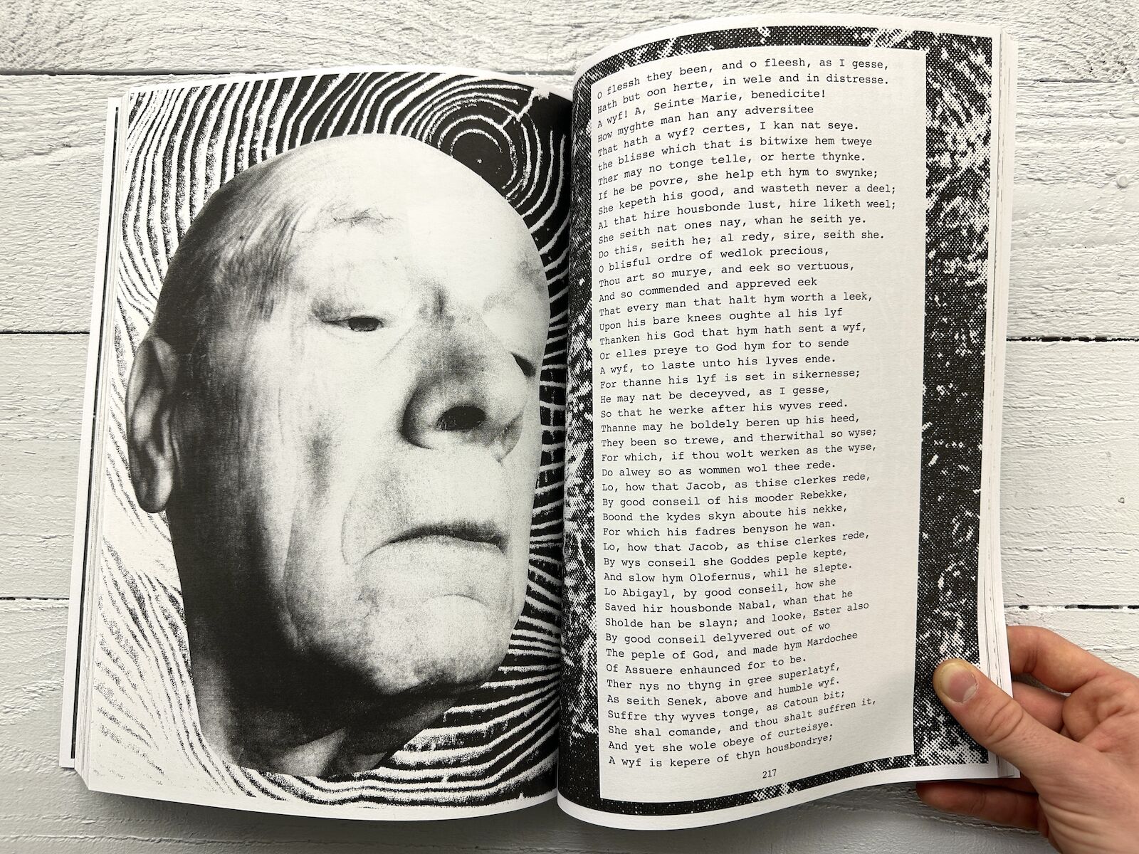 For her edition of The Canterbury Tales, Marvin Gaye Chetwynd has selected her favourite tales and produced a heavily illustratred, collaged book that mixes Medieval and contemporary imagery, and includes the following tales: