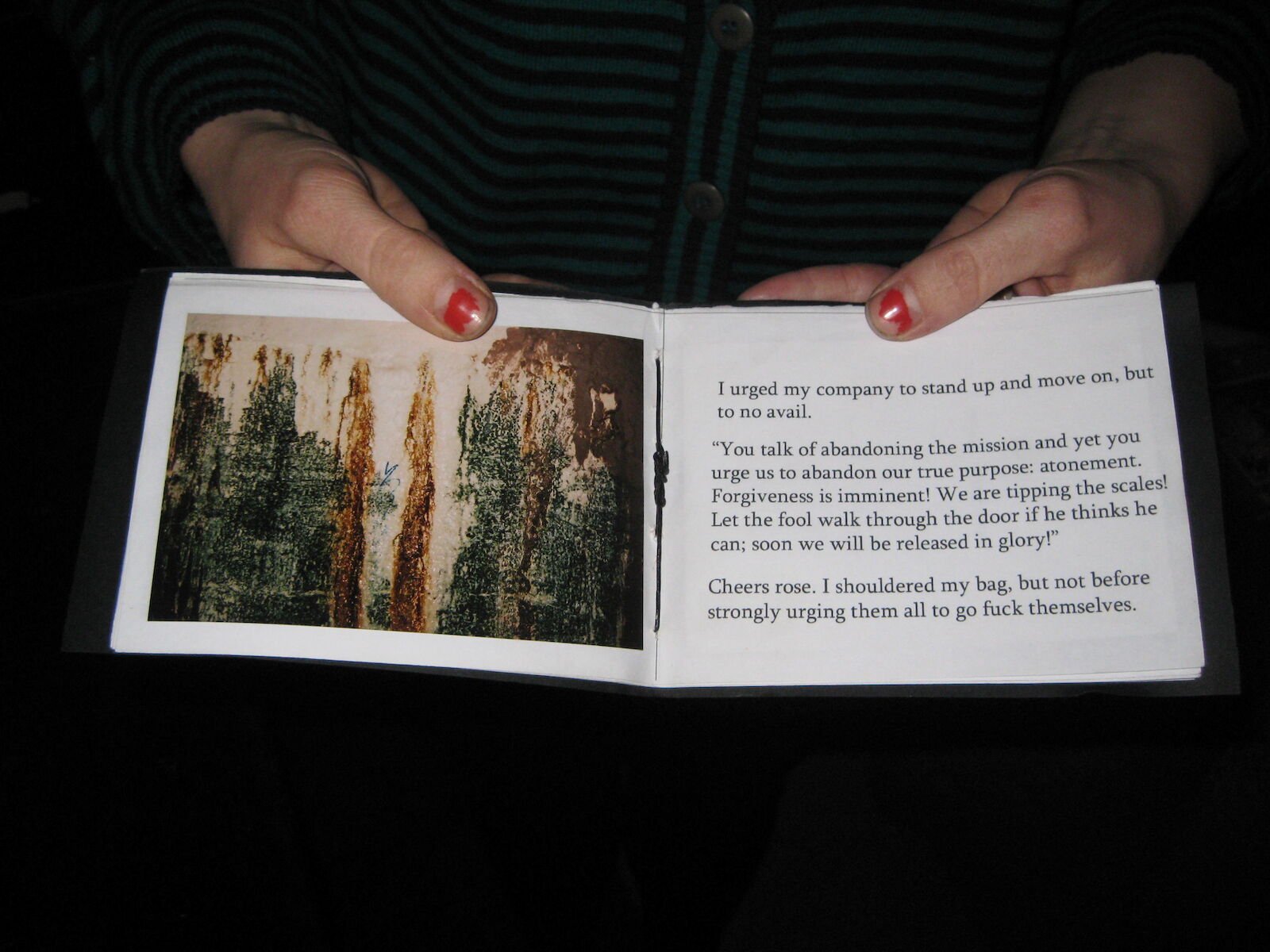 Thought Product included with Physical Product: A method of literary collaboration was developed for the purpose of disturbing the state of animation by which a reader moves through the text. Through our process of writing upon writing we sought to mimic the pivots of logic found in moments on the border between the aware and the unconscious.