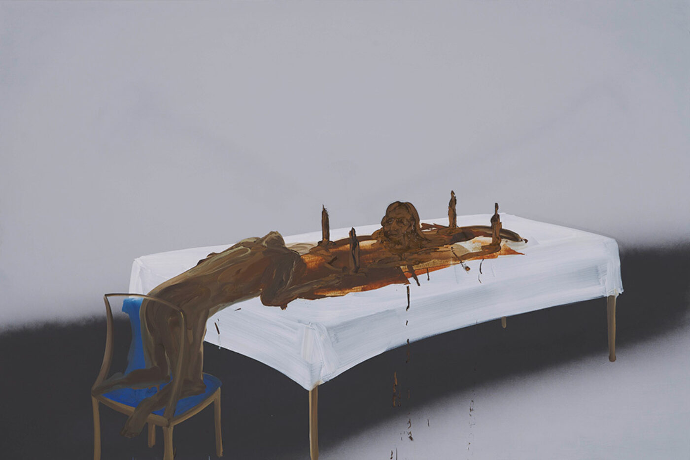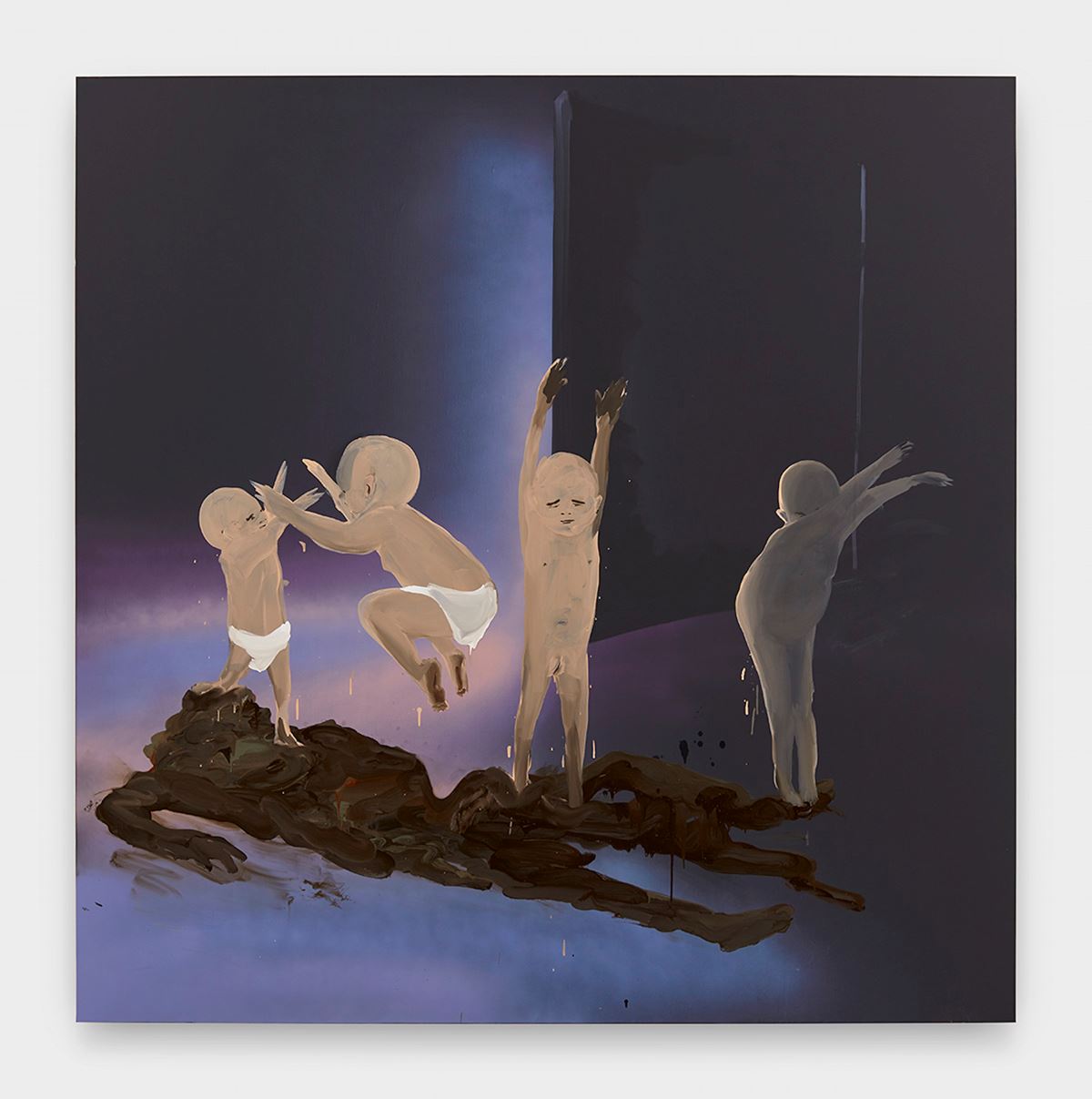 Clearly "shit mom" can be taken in several ways. Most obviously, it would seem, the title adopted by Tala Madani for her latest series of paintings (and for her book) refers to
