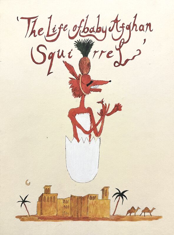 In sieben farbigen Malereien zeigt Andrew Gilbert wichtige Stationen im Leben des Baby Afghan Squirrel. Auf den Rückseiten findet man den handgeschriebenen Brief. Sprache: Englisch