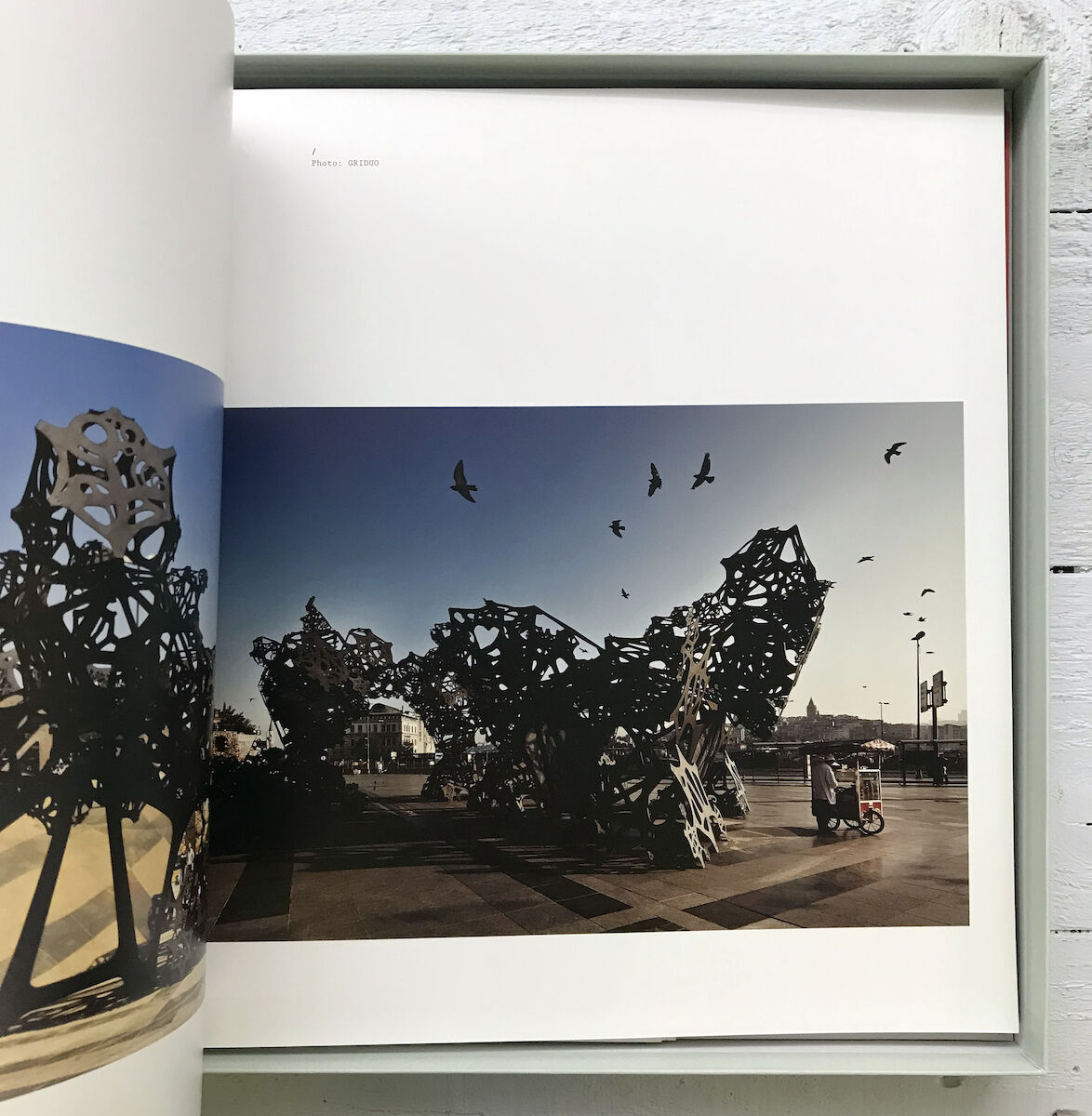 The Morning Line is both ruin and monument, the blackened frame of a cathedral-like structure; a drawing in and of space; an ‘anti-pavilion’.