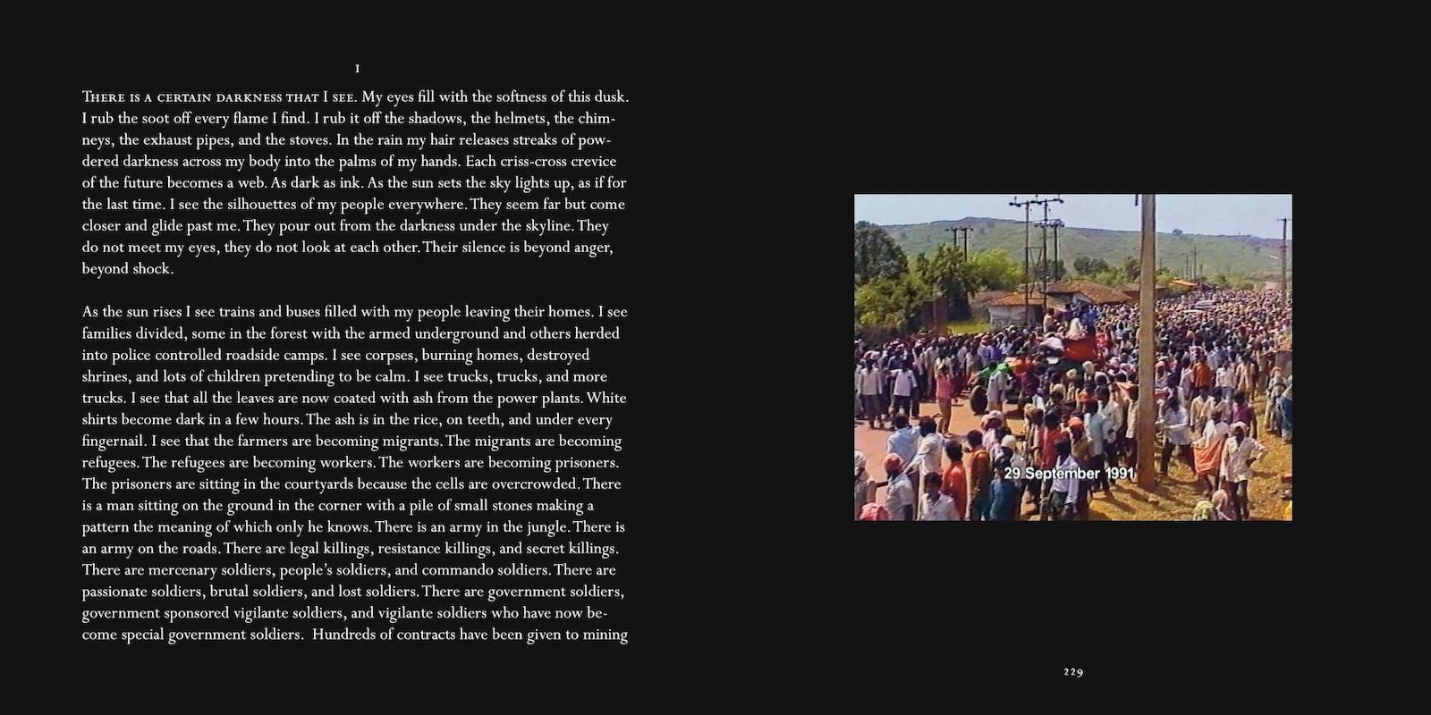 in which industrial interventions have reshaped and permanently destroyed parts of the landscape of the Indian state of Odisha for over a decade, leaving villagers in suffering and devastation. The ambitious catalogue attempts to reopen and deepen discussions posed by the exhibition by bringing together a variety of voices from academic and activist backgrounds, factual and intimate narratives and interviews, image documentation, and additional documents. Equally, these complex and varied narratives help to unfold a multiplicity of different knowledges and testimonies on this obscured and intricate conflict. Edited by TBA21 and Yorkshire Sculpture Park