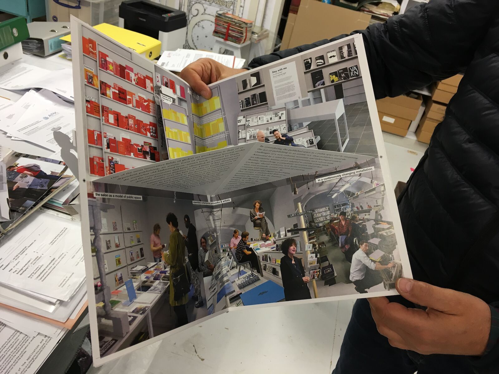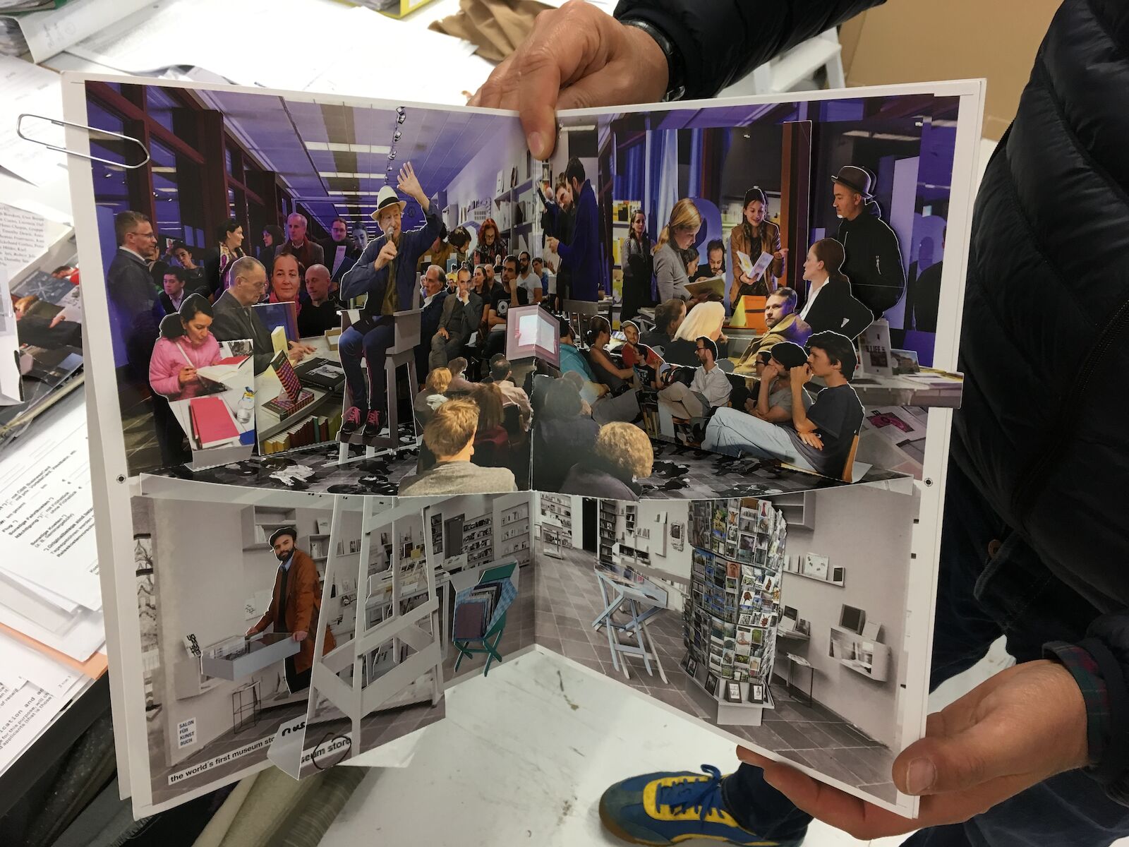 A three-dimensional paper sculpture with eight different views. A pop-up book as an homage to the contemporary art book scene.