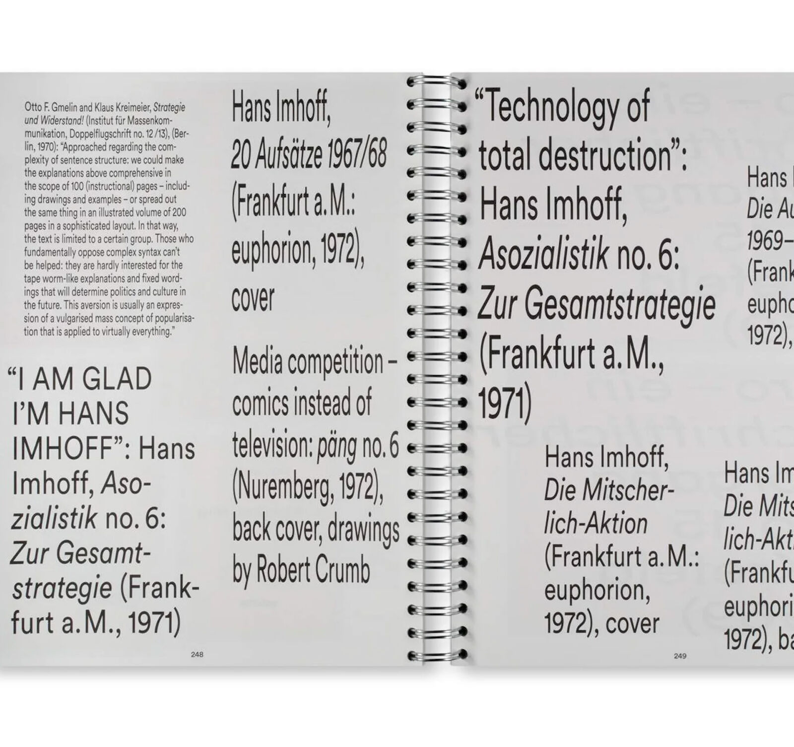 This book (which appears in conjunction with an exhibition at the Weserburg in Bremen) is the first to present the underground and self-published works that came out of West Germany in such depth, while also showing the internationalcontext in which they emerged: not as an anecdotal history but as an attempt to tap into the aesthetic cosmos of a Do-It-Yourself rebellion, one that also challenges us to take a new look at the current boom in »independent publishing«, the risograph aesthetic, and so on.