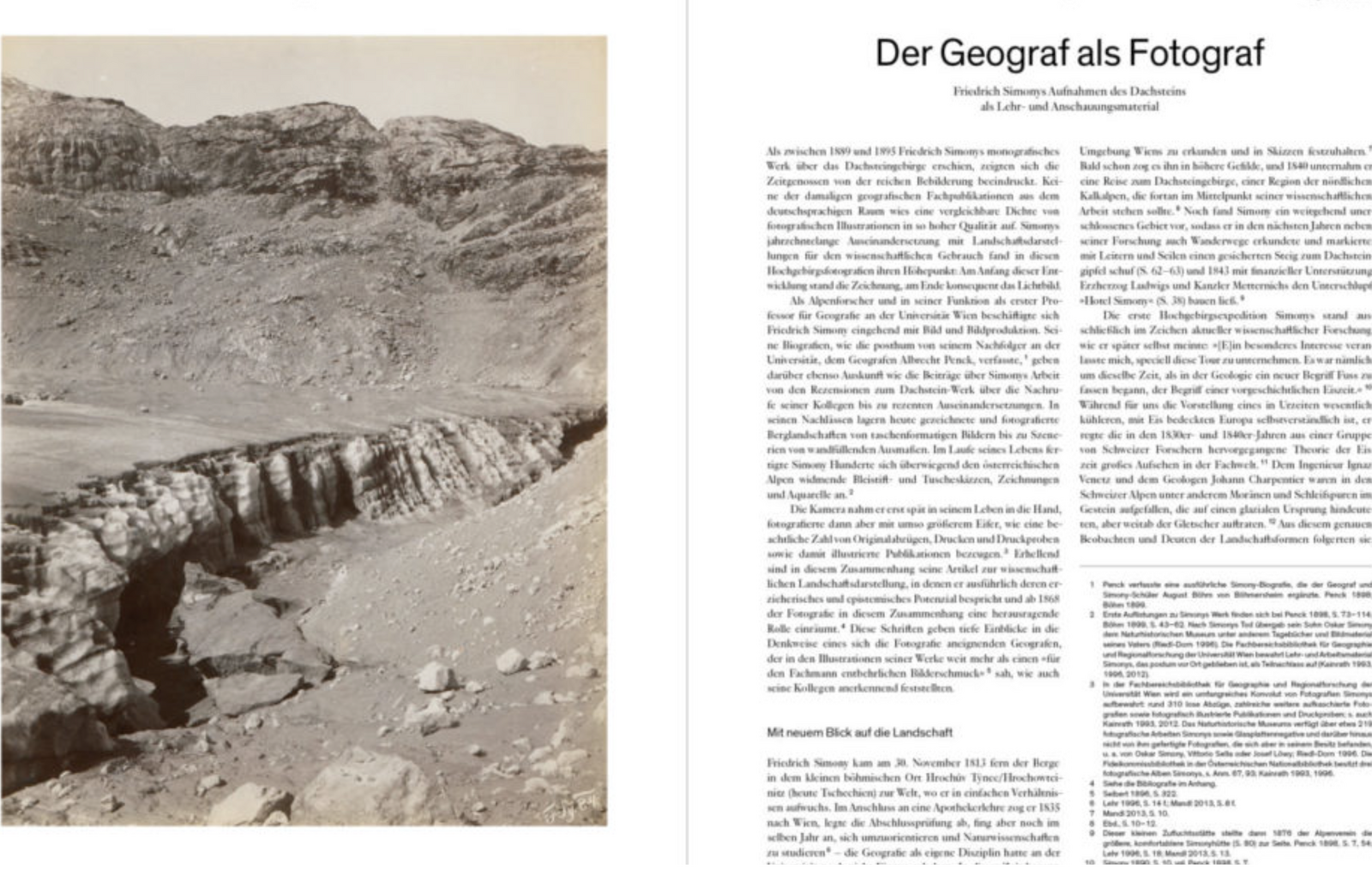 der Formenreichtum des Gebirges, das er mit einem radikal neuen, von der Wissenschaft geprägten Blick erfasste. Das Studium der Berge ließ Rückschlüsse sowohl auf deren Entstehung als auch auf deren weitere Entwicklung zu, wobei Simony die Fotografie als zentrales Werkzeug der Erkenntnis diente.
