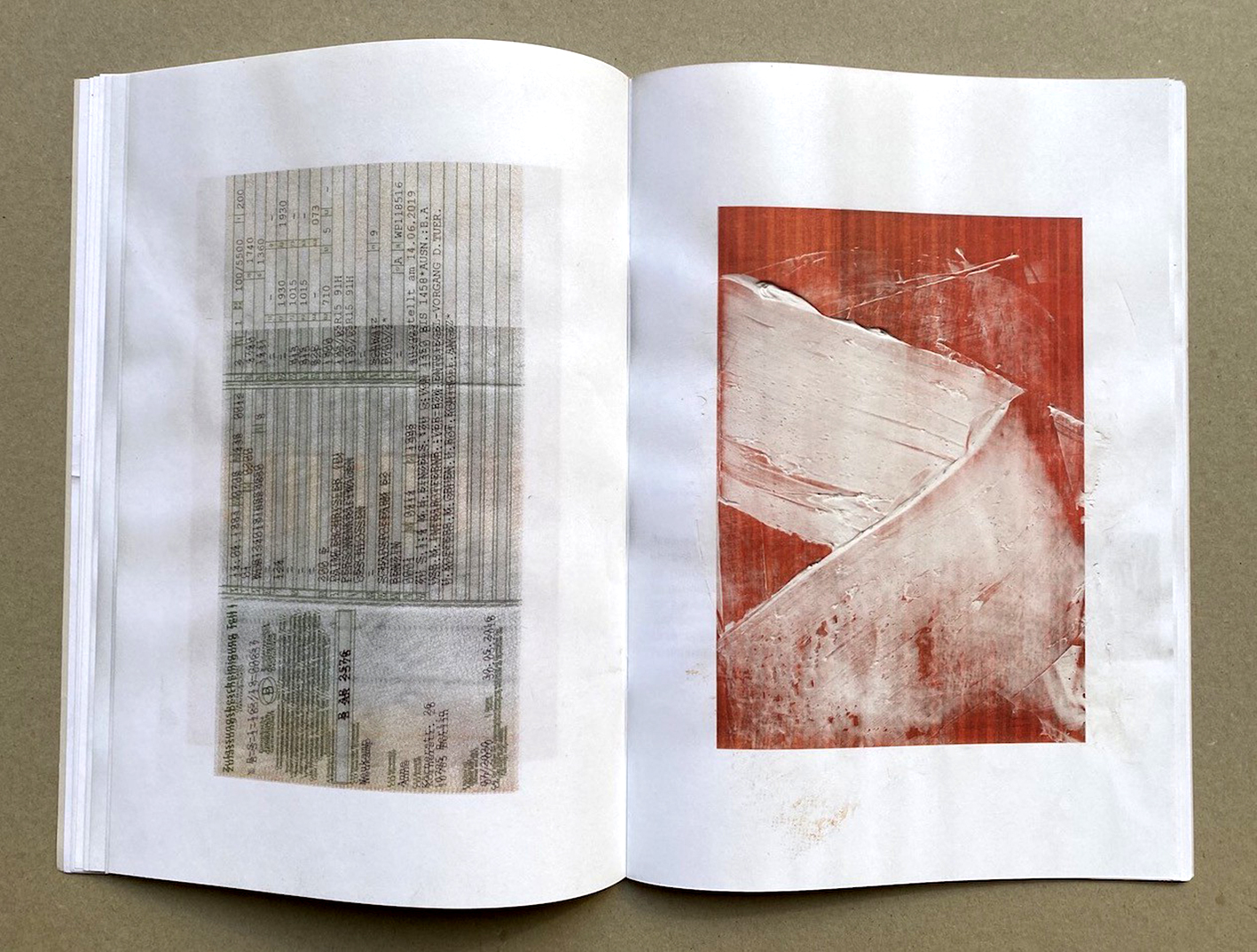 The painting is photographed at various stages of its completion and these printed images are used as the basis for further Studies. The artist reuses the loose sheets he finds in his studio: fragments of theoretical texts printed for the preparation of exhibitions, essays on the work by other artists, extracts of bank statements, failed copy of car documents etc. Edition of 150