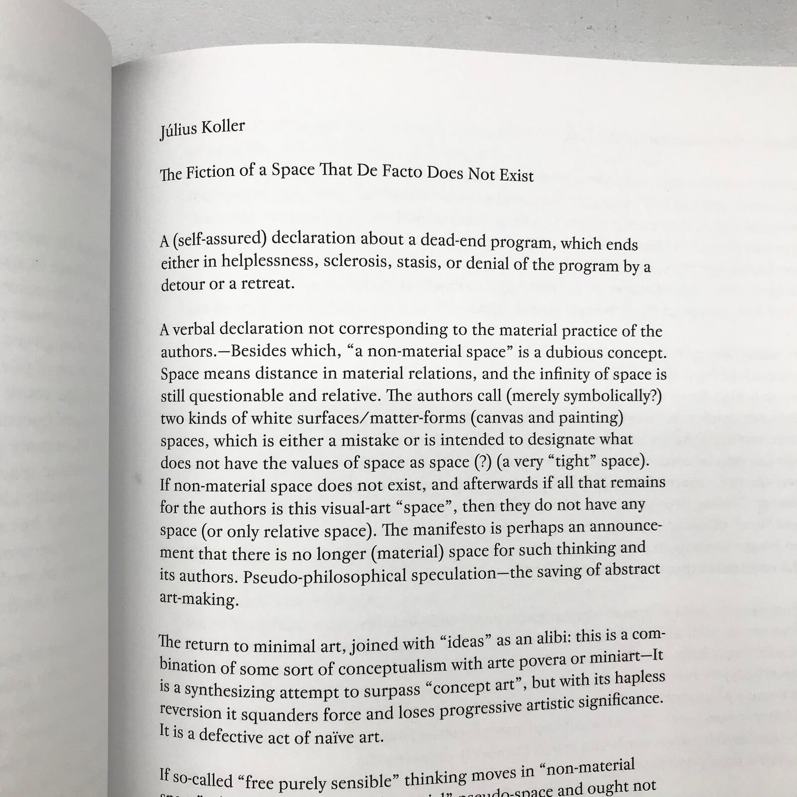 The publication is the first comprehensive documentation of the project White Space in White Space, which was initiated by Stano Filko, Miloš Laky, and Ján Zavarský in 1973 and evolved over the course of almost ten year. This book examines all the international exhibitions (Brno, Budapest, Paris, Warsaw, Beograd, Kassel), the collected manifestos, and the artists’ writings as well as the project’s further transformation in the practice of Stano Filko as a solo artist.
