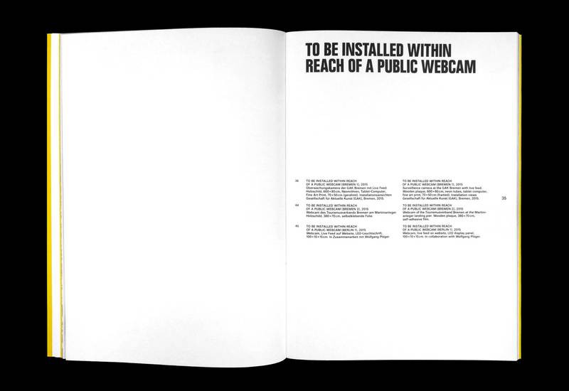 The publication combines visual material, textual fragments and critical commentary, positioning itself between artist book, exhibition documentation and media reflection.