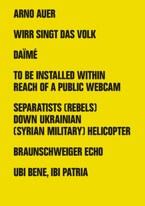 Wirr singt das Volk is an artist’s book by Arno Auer published by Textem Verlag in connection with exhibition contexts.