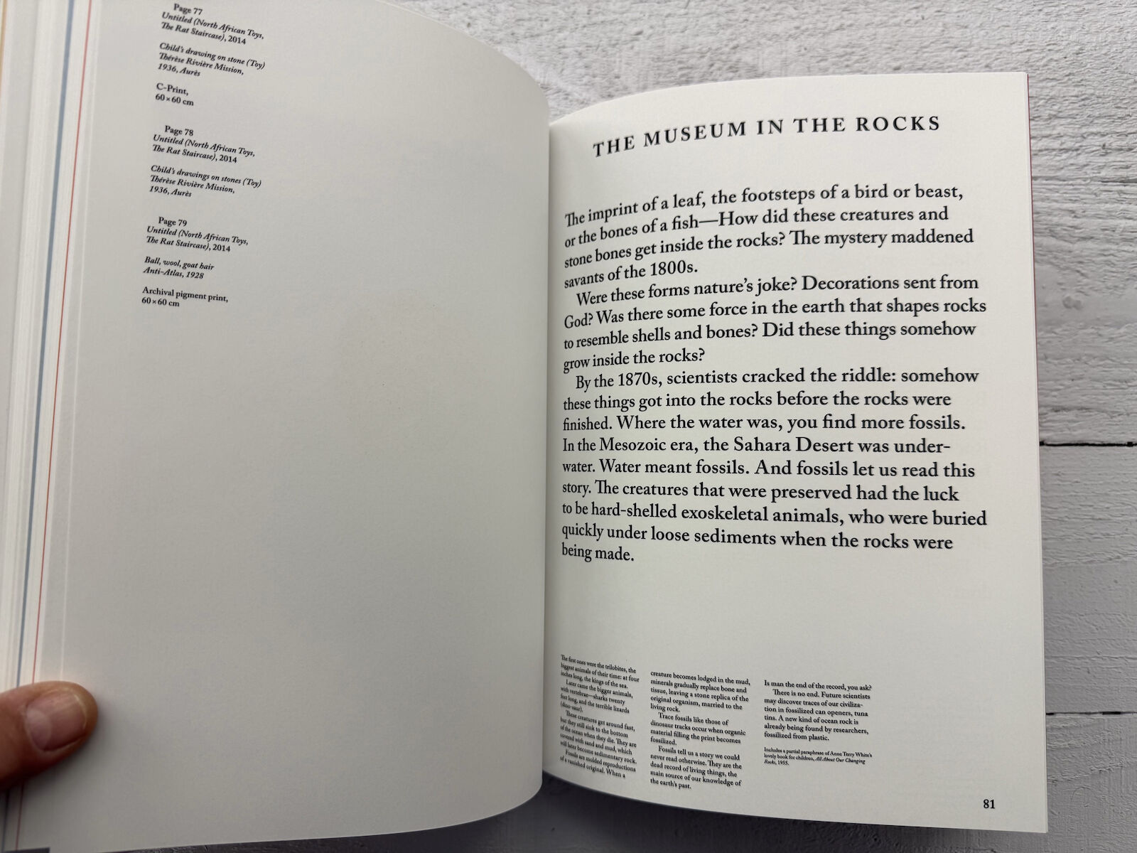 It is conceived as a guide supposedly written by an anonymous, humble bureaucrat, which eagerly instructs readers on how they should prepare their city for the visit of a high-ranking guest. Whilst the instructions may seem reasonable at first glance, a closer look reveals that these patriotic Potemkin villages are a sham. A GUIDE TO FOSSILS Millions of years ago, the area now known as the Sahara was a tropical paradise. Today, the arid region between the Atlas Mountains and the desert is home to numerous traders who make a living from the laborious process of excavating, processing, forging and selling fossils from their homes. In *A Guide to Fossils*, Yto Barrada has spent years documenting this unique landscape – and the people who carry out this work – through photographs, film and artefacts.