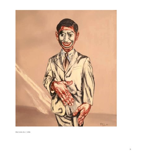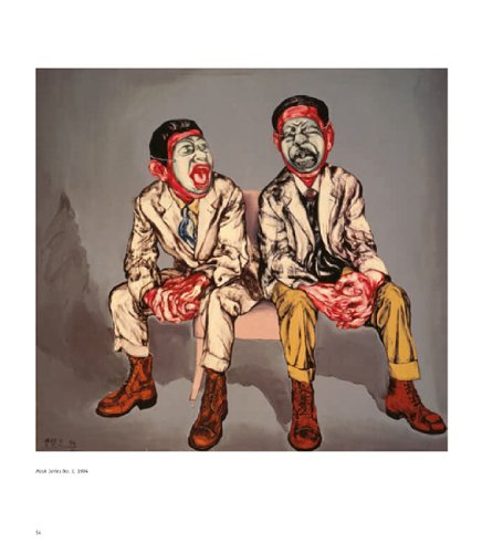 Zeng Fanzhi is best known for his Mask paintings: figures wearing simplified white masks, often with exaggerated hands and wide, staring eyes.